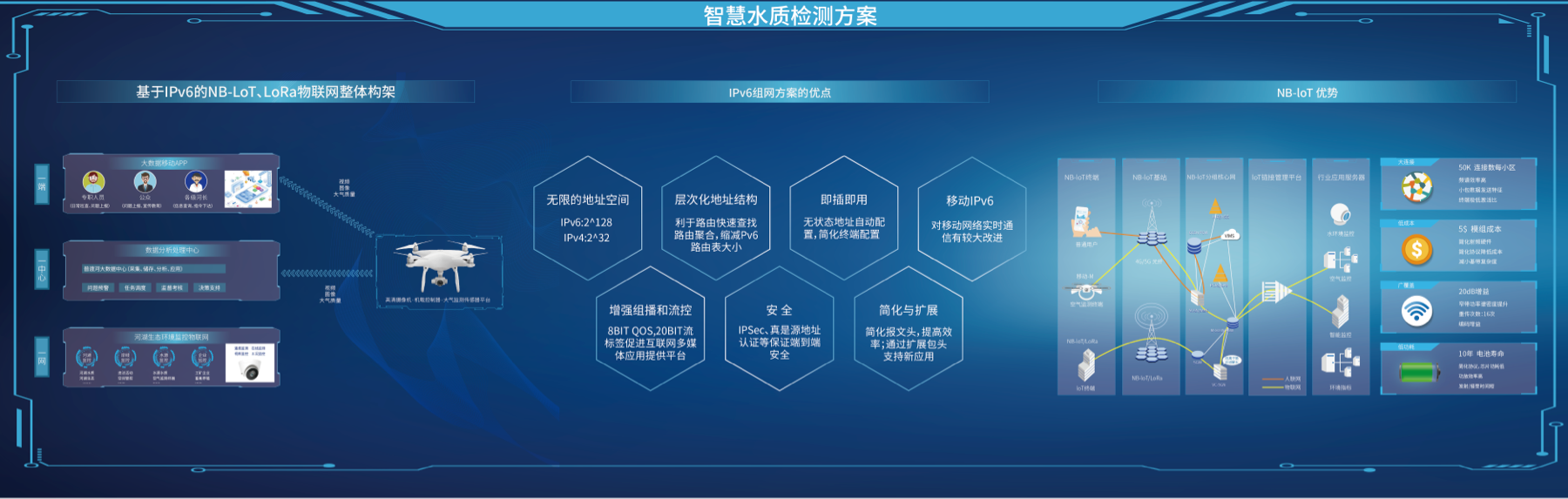 以IPv6技术及低功耗物联网为基础,建立地空一体化检测网络体系。实现河流生态管理平台的“1+N+N”框架。