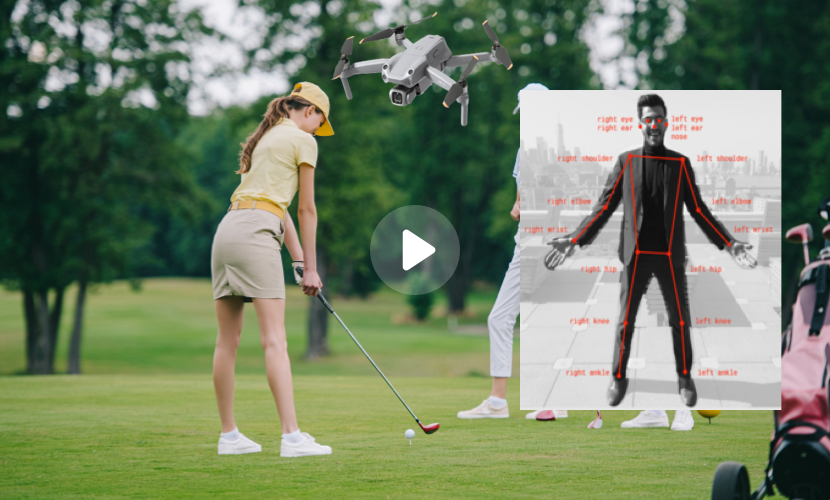 利用无人机自动追踪并采集高尔夫运动员的高分辨率图像,利用深度学习神经网络算法提取每次挥杆动作全过程, 并对挥杆标作进行打分。提供运动员回看比赛中的每次精彩挥杆瞬间。