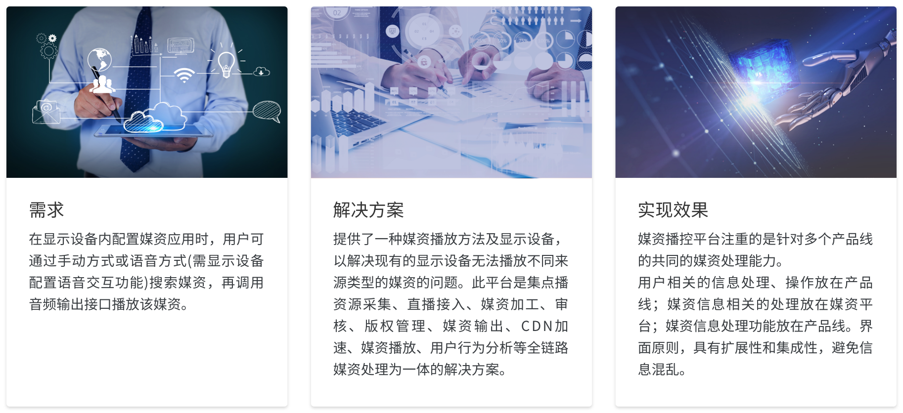 解决方案 医疗·通信 媒资播控 媒资播控 新媒体是一个独特的解决方案,通过各种数字技术与互联网技术,支持网络媒体、手机媒体和数字电视向用户提供信息或服务的新的媒体形态。NDIT提供的解决方案和服务可以帮助企业降低成本,让企业将重点放在战略业务目标上。 联系我们 优势 NDIT拥有成熟管理解决方案,助力企业提升品牌形象。 NDIT新媒体解决方案可快速高效地与应用集成,可减少在 IT 基础设施方面的资金投入,将更多精力放在核心业务上,从而提升您的客户体验。 提供媒资获取、媒资加工、媒资运营的全套IT解决方案。 某媒资播控平台 客户:国内知名通信集团
