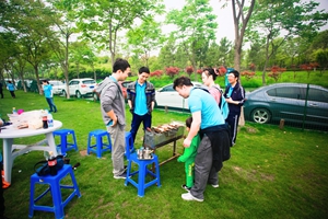沿着尚贤河湿地徒步慢行线,感受到河汊密布,桥隧纵横,大家有说有笑欣赏着美景,不虚此行。漫步后大家心情大振,紧接着在满目的春色中有序排队领取食物、亲自动手烤制,并与身边的同事家属们一同分享美味的午餐,整个活动在欢声笑语中圆满结束。